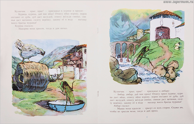 Грузинская народная сказка о муравье и кузнечике почти полностью повторяет сюжет общеизвестной сказки про петуха и бобовое зернышко.