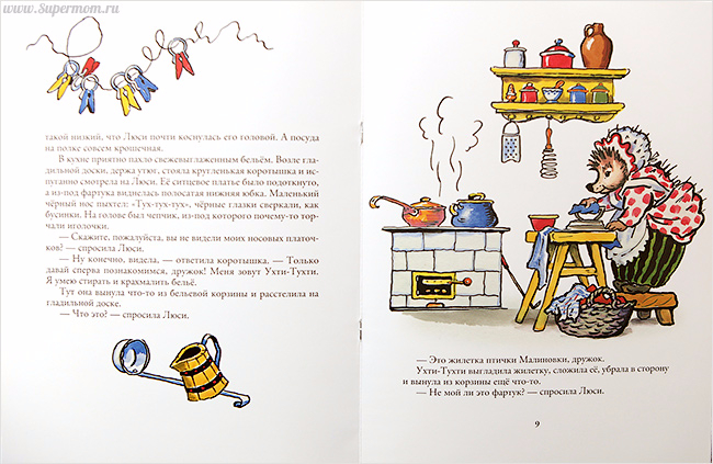 Она о девочке Люси, которая потеряла свои платочки и, отправившись на их поиски, нашла норку Ухти-Тухти, ежихи-прачки, что стирает для всех зверей в округе. Для дятла накрахмалить жилетку, для овечек отстирать белоснежные шубки, котику - перчатки, а курочке - чулочки. По сути сюжет совершенно незамысловат, но дети почему-то очень любят эту сказку.