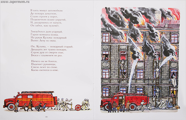 Вот знаете, в интернете одни восторженные отзывы. А я взяла книгу, и мне не понравилось. Сначала. А потом я прочитала Алисе, и она была в таком восторге, что я сразу передумала, и мне теперь всё нравится. В одном стихотворении и экскурс в прошлое, и трагедия девочки Лены, и рассказ о сложной работе пожарного Кузьмы.