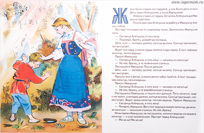 Вопросов, конечно, много, но они риторические и детского мировосприятия совсем не касаются)) Например, почему говорящий козлик бегал поговорить с утопленной сестрой и не хотел рассказать всё царю? И почему ножи точили целую неделю, чтобы зарезать козлика? Интересно, дети в каком возрасте задаются такими вопросами? Или вообще не задаются?