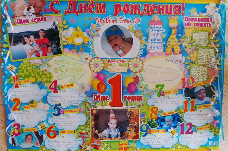 Ну и фоточки: наш плакатик на ДР и именинник с праздничным тортом.