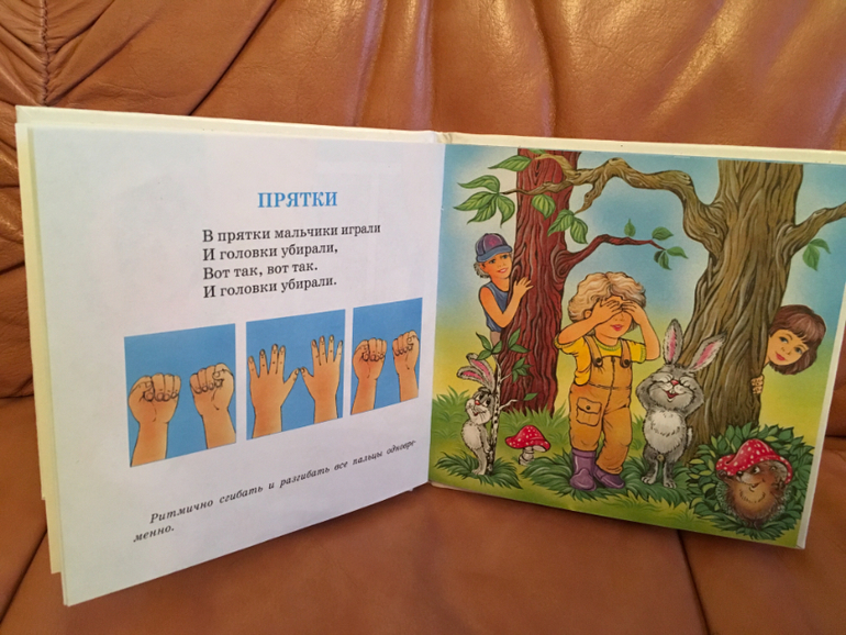 Ещё одна книжечка спасла наши пальчиковые упражнения, ребёнок мой, по всей видимости, визуал, и вот эта книжица с яркими иллюстрациями очень помогла. Начали с одного упражнения, ввожу медленно и постепенно, чтоб не спугнуть) возможный успех данного пособия - простота и до боли знакомые с младенчества стишки.
