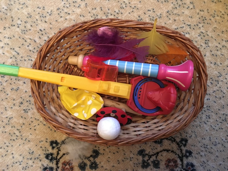 3) Дыхание. Корзинка с дудочками, свистками, перьями.
