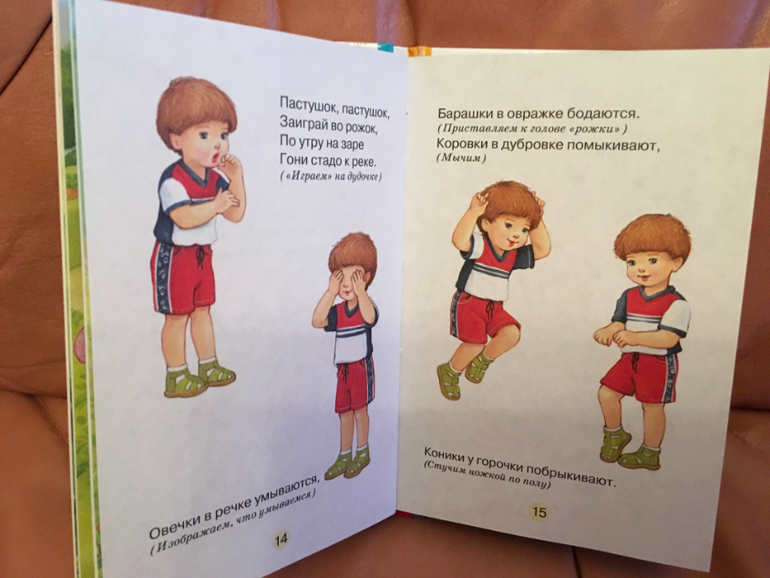 Затем устраиваем физкультминутку и отдыхаем. Нашла также супер книжечку, которая нравится ребёнку, и он все с удовольствием оттуда выполняет. Успехом стали изображения детей, которые активно все делают. По совместительству это наша общая моторика.