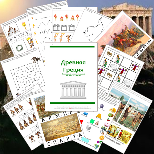 73 стр., на некоторых страницах по 2-3 задания + тематические карточки "Древняя Греция" и "Лошади" + информация для подготовки мам. Комплект свертан с разбивкой занятий по дням недели (каждый день в комплекте индексируется для Вашего удобства определенным цветом).