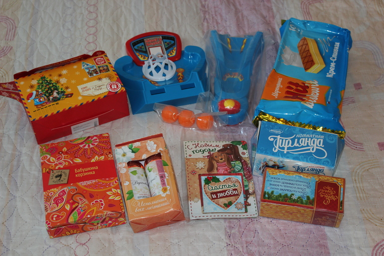 Только-только вскрыли посылку, все лежала под елкой, дожидаясь новогоднего утра!!! И целый ворох чудесных подарков для нашей семьи!!!