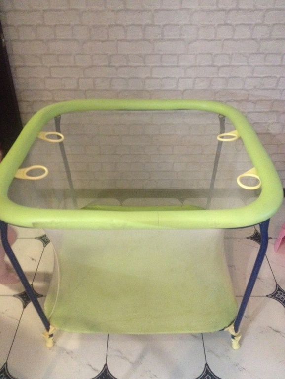 Салатовый , 80 на 80 см, квадратный, состояние хорошее, компактный, легко складывается, прочный.