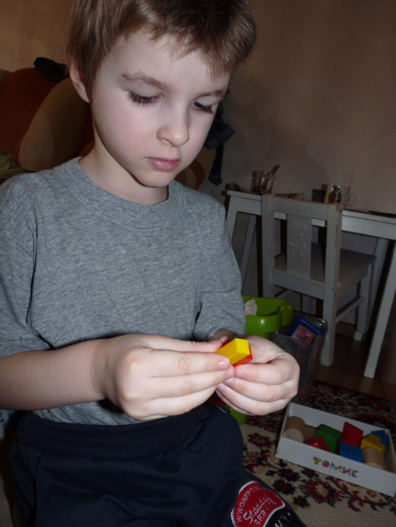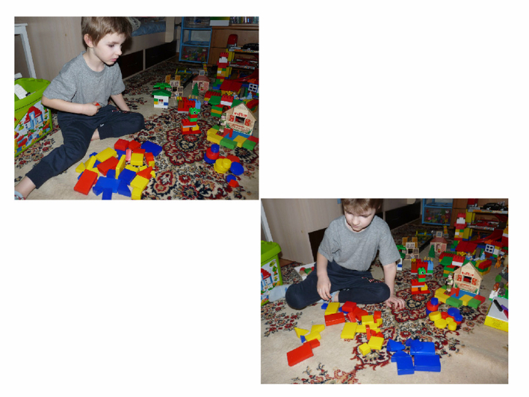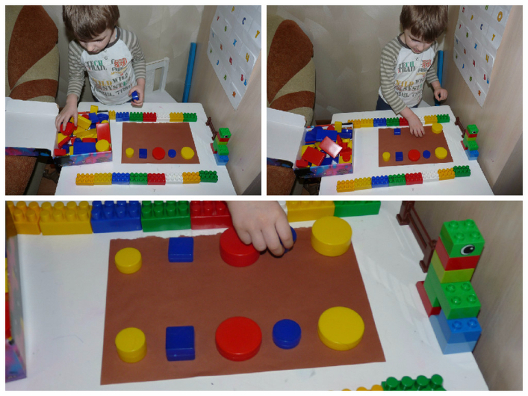 И блоки тоже разобрали, выбрали все круги, только синие фигуры, только жёлтые прямоугольники, только квадраты и т.д.