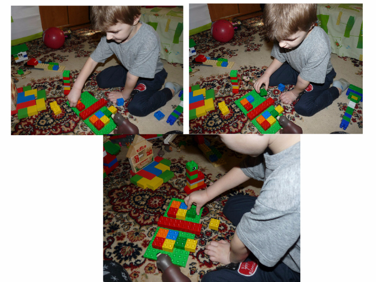 Мы помогли, точно такую башенку построили, чтобы две одинаковые были и медвежата ссорится перестали.