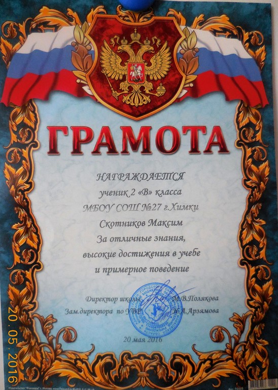 Вот и закончился учебный год!Максимка закончил 2 класс круглым отличником!УРА!