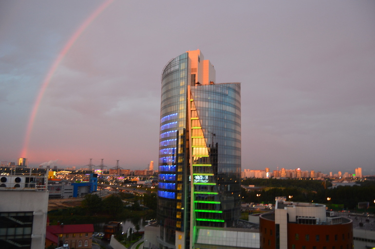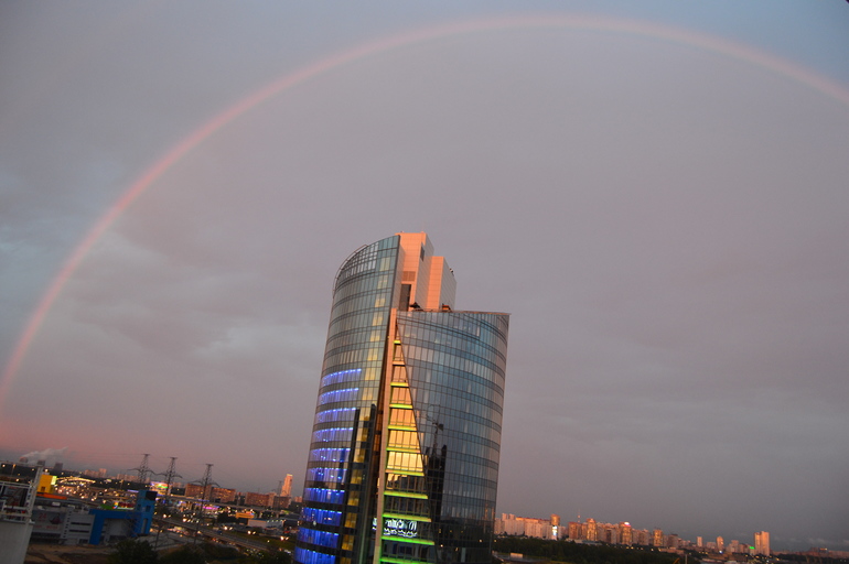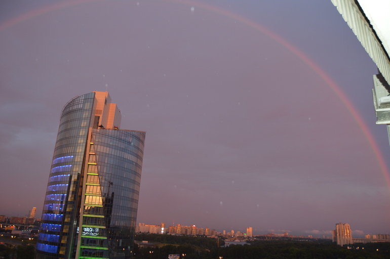 Вот такую красоту,я снимала сегодня у себя с балкона 15,08,2014 в 21-00ч.Это фото с ул.Панфилова Кантри-Парк