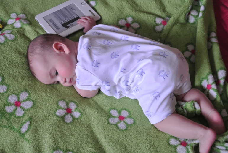 - вертеться со спины на живот, с живота на спину на обе стороны. Если в прошлом месяце Соня это делала очень редко, то в этом ее нельзя оставить одну на кровти. Она перекатами добирается до любого края.