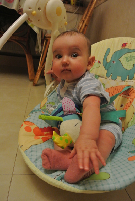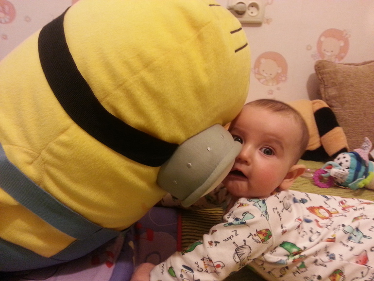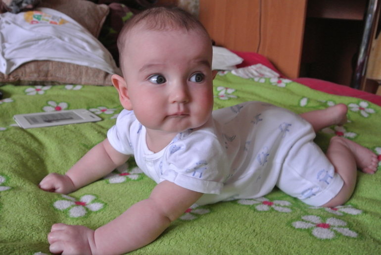 - становиться на четвереньки получилось тоже в конце месяца. До этого только поднималась на ручках и качалась из стороны в сторону. А за несколько дней до 5 месяцев, сама встала на четвереньки, покачалась взад-вперед и увалилась. Есть что оттачивать в следующем месяце.