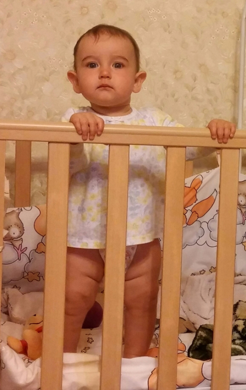 - ходить/бегать, держась за ручки - подходит к тебе, берет за руку и ведет, куда ей надо. такая маленькая, а уже командует :) сама только полшажочка - шажочек может сделать.