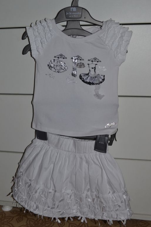 2. Комплект Next, ростовка указана 80-86, но большемерит, капри получаются только при росте 92 (до этого можно носить как штаны). Очень качественный и нежный