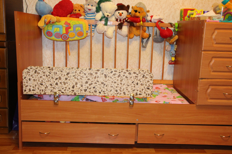 Убрали спинку на детской кроватке,чтоб Даша могла сама залезать в неё.Залезать то она стала,но муж стал бояться теперь,что она упадёт(((И долгое время Даша спала со мной.