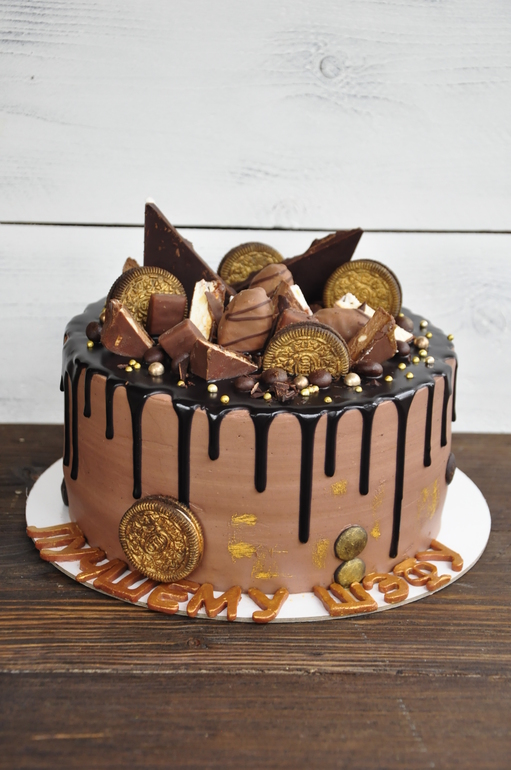 Простой, знакомый и очень "сладкий "дизайн. В этот день было испорчено 300 г шоколада, т.к глазурь получаться не хотела!!! В итоге в ночи я нашла рецепт глазури на крахмале, молоке и какао. Бинго!!!!Ничего не надо нагревать и топить, просто очень хорошо смешать!А какой результат! Я просто в шоке, это лучшая глазурь в моей жизни, по всем параметрам. И она не застывает намертво,очень мягкая ммм, для меня это просто чудо находка))) Ловите кому интересно:3 ст.л просеянной сахарной пудры, 3ст.л. крахмала, 3 ст.л какао(у меня дорогой),и 3 ложки холодного молока, все это быстренько смешать в миске, если густо подлить молока до нужной вам консистенции. Она получается коричневая, я красила черным цветом ее, чтоб было больше похоже на шоколад и был контраст с моим тортом)