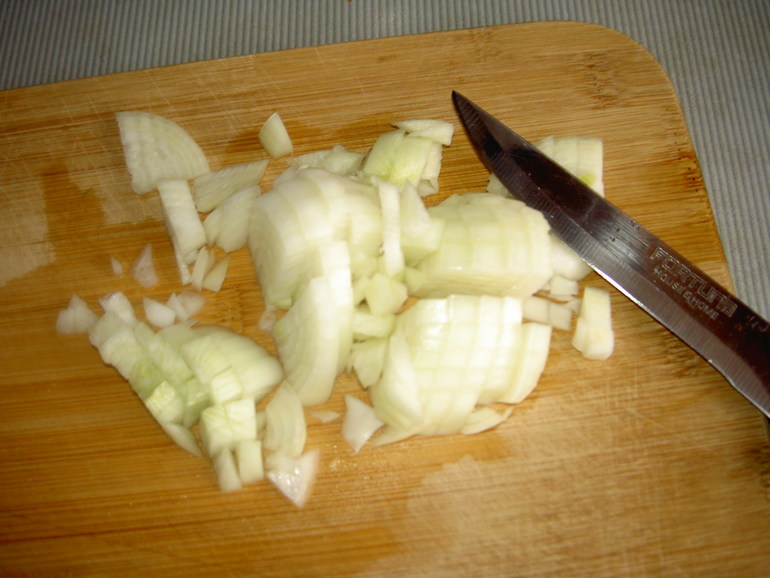 Лук мелко нарежьте, морковь натрите на средней терке.