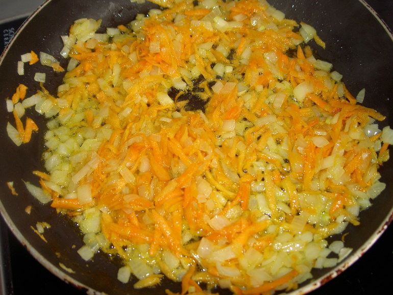 Выложите овощи в сковороду с нагретым маслом, пассеруйте минут 6-8.