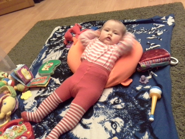 Время бежит и мы растем.Для нашего возраста мы дюймовочки.Вес 7500.Ели заставишь пару ложек кмши покушать.Творожок кушает хорошо.Спим все вместе,только переложишь в кроватку так сразу в слезы.Зубик один вылез.Активно смотрю обувь уже на весну и лето.