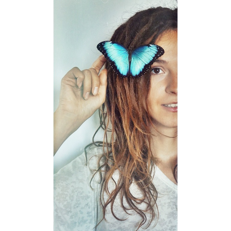 Недавно, купив для нас с Ники одинаковые тельняшки на мама-маркете, я выиграла живую бабочку! Было очень приятно в первый раз в жизни что-то выиграть, но к сожалению век бабочки недолог и в естественных тропических условиях среди ярких цветов ей живется наверняка гораздо веселее..(