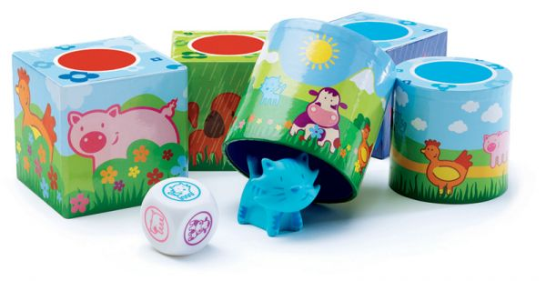 1. В первом варианте игры под 6 кубиками с отверстиями прячутся животные. Игрок бросает игральный кубик и узнает, кого надо найти, А теперь нужно вспомнить, кто в каком домике прячется.