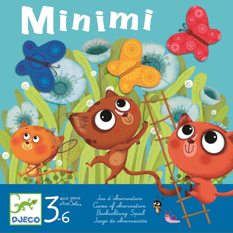 «Миними» - необычное лото в виде луга с бабочками, игра очень красочная и простая. В этой игре малыши в образе веселых и котят ловят бабочек и забирают их в свой сад. Кто первый соберет четыре бабочки нужного цвета, тот выиграл.