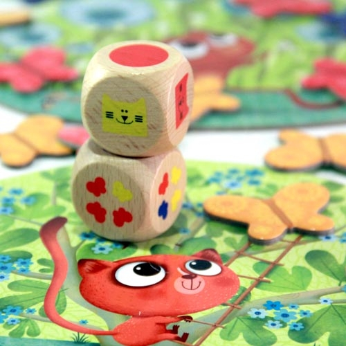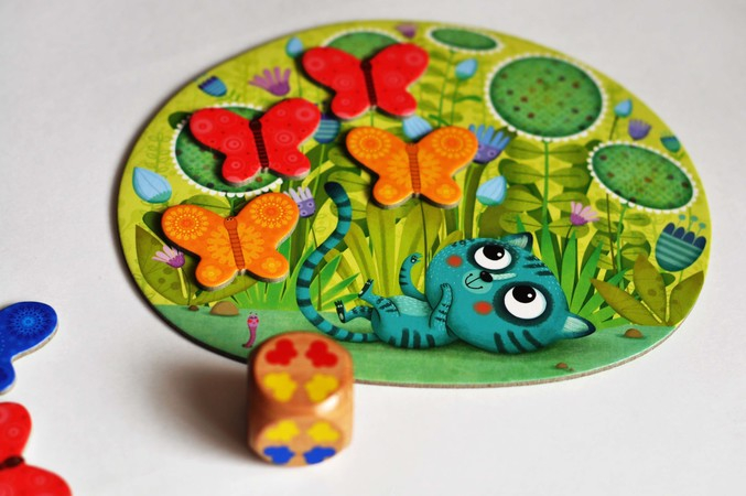 Если на игральной кости выпало изображение котенка, то игроку можно взять бабочку из чужого сада. Если у других «котят» нет подходящей бабочки, то ее можно взять в середине стола.