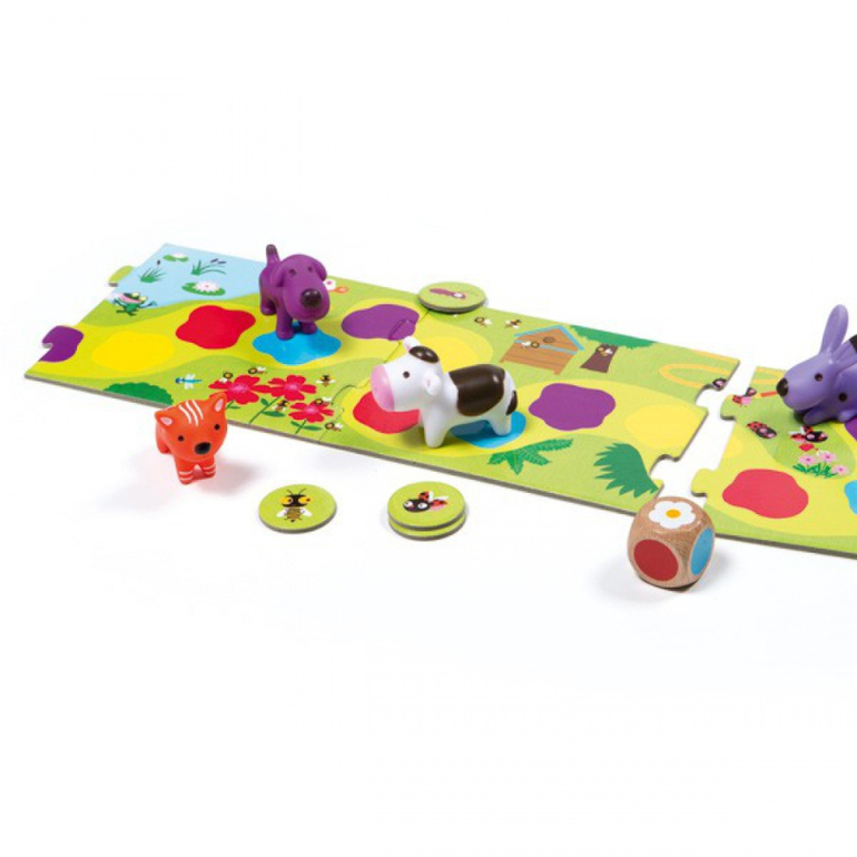 Настольная игра Маленькая дорожка - веселое приключение для 2-4 игроков, в котором каждый малыш играет за котенка, собачку, зайчика или коровку. Цель игры - первым добраться до конца маленькой дорожке и остановиться на разноцветном квадратике.
