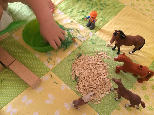 Здесь мы играили в поиски того, что лошадка кушает, но Саня не очень понял, что я от него хочу, раньше так не играли: