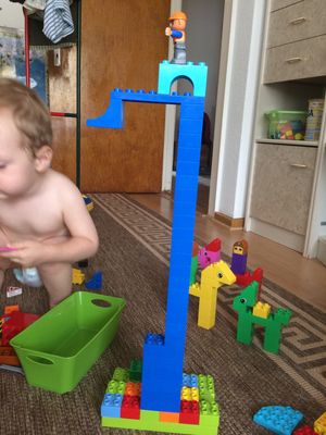 Конструировали и очень увлеклись: наклепали много лошадей, а в конце из синей лошади Саня попросил подъемный кран сделать)))