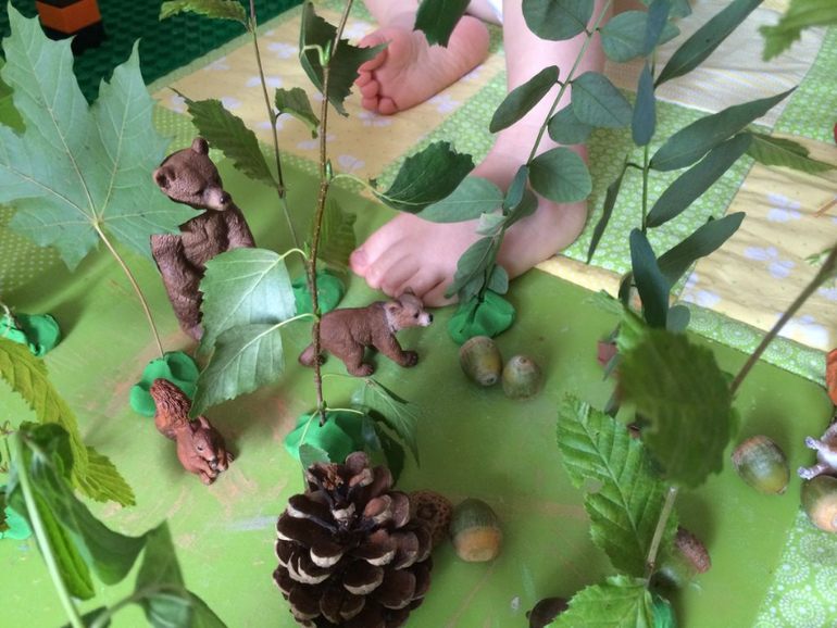 Саня у нас как-то с детства не любит с природным материалом возиться, хотя я ему с младенчества и камушки, и каштаны, и желуди, и листья подкидывала для игры - так до сих пор и не развилась любовь к ним. Пытаюсь до сих пор в наши игры как можно больше живых материалов включать :
