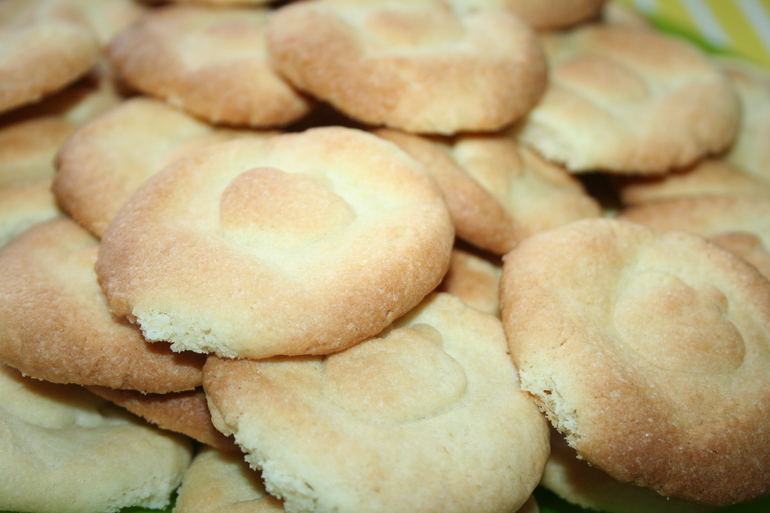 Из такого теста очень легко и приятно крутить шарики для кругленьких маленьких печений. Украсить их я решила формочками для пластилина, по-моему, получилось здорово :-)