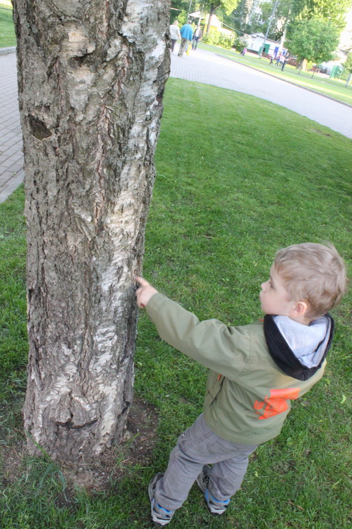 Во второй половине дня мы ходим в садик поиграться с детками на 2-3 часа. Мы взяли с собой картинки деревьев и листьев, чтобы на обратном пути заскочить в парк и найти хотя бы несколько деревьев. Что мы и сделали. Вот, например, берёза.
