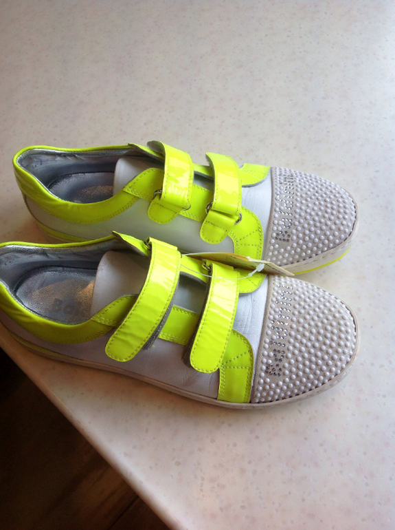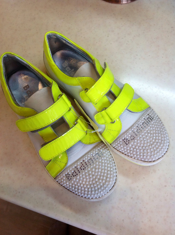 Потрясающие кеды фирмы Балдинини 35 размер, стелька 22-22,5 см. Смотрятся супер, стразы Swarovski переливаются всеми цветами радуги. Отделка лаковой кожей лимонного цвета, что в данный момент очень актуально!!!