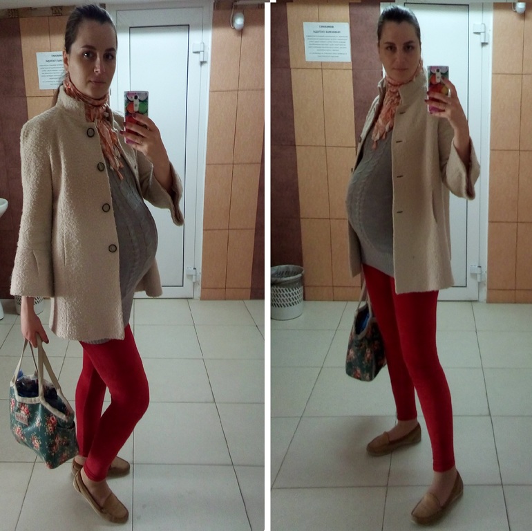 Растёт, растёт наша малявочка. 7 см - это вам не хала-бала! Человечище! Говорят, палец сосать уже может))) В джинсах простых к вечеру становится тяжеловато сидеть, животишко надувается, да и вообще сидеть долго не очень приятно, но работа офисная и никуда не деться. Встанешь, походишь, походишь и снова на кресло. А вообще похоже пора доставать беременные брюки. Каблуки уже утопали в шкаф. Года на 3, по самым скромным подсчетам. Приталенный пуховик там же. Не то, что бы не сходится, просто перетягиваться не хочется. И так к вечеру периодически низ живота начинает поднывать, а тут еще, если затянешься, так вообще караул.