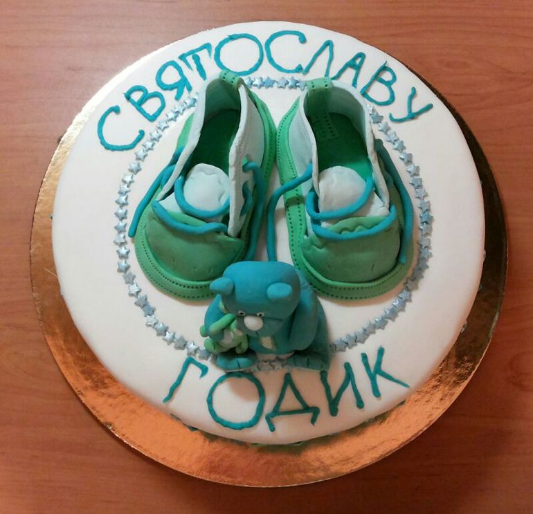 Фигурки я ваяла 6 или 7 часов. Возможно этому сильно способствовал Слава, который бегал по кухне и воровал со стола все до чего дотягивался: мастику, ножи, фольгу, крахмал, инструменты, скалку...Увидев коржи, он практически залез на стол пытаясь урвать кусок торта.