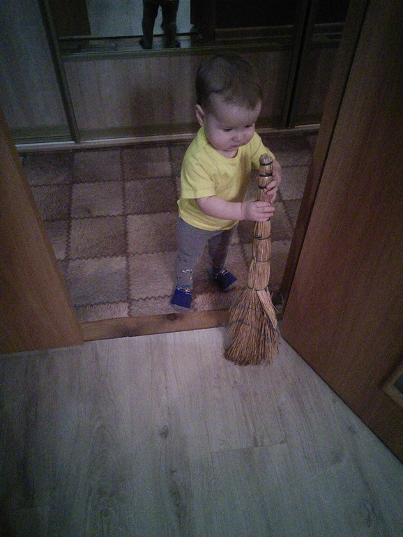Ну точно не год... Недавно думала, блин поперёк кровати помещалась, а уже вон ходит сама, порядки наводит. Как-то дольше год должен был тянуться