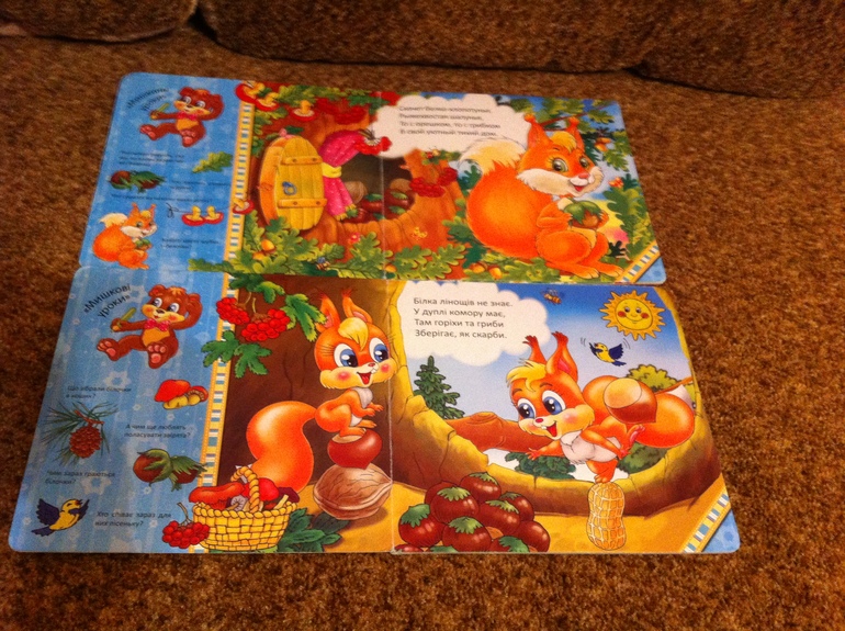 Сначала мы почитали книжечку про белочек, обсудили что они живут в лесу и любят орешки.
