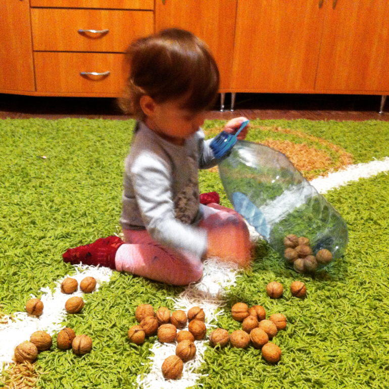 Насобирали белочки орехов, я высыпала немного, но Наде показалось этого мало и она высыпала все. Собирала долго и увлеченно.
