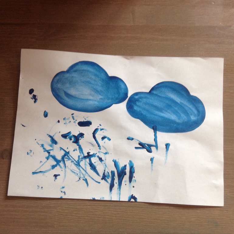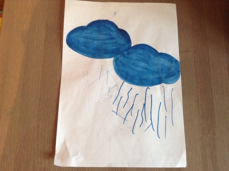 6. Рисовали карандашом дождик для тучек. фломастером я а карандашом сынок