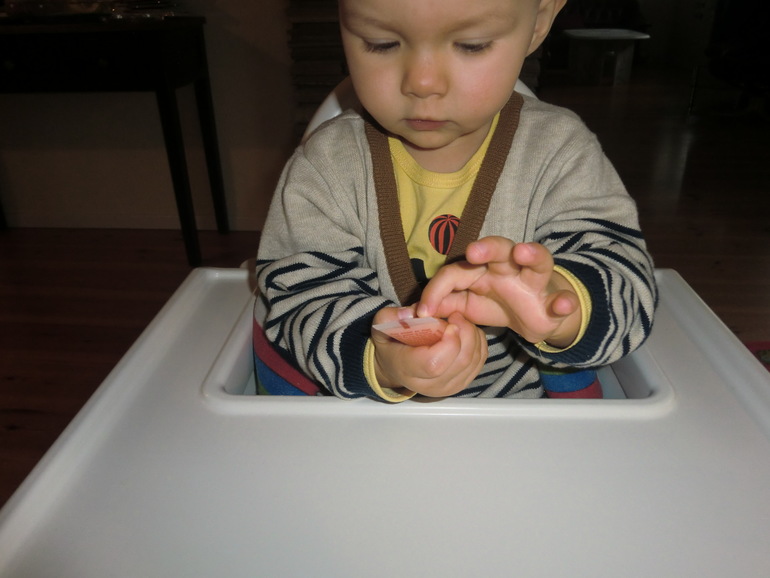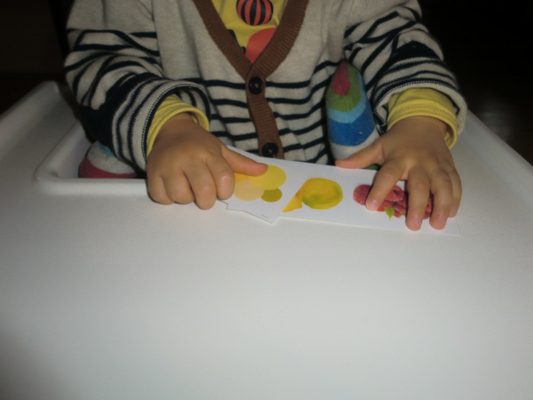 хочется сначала всё держать, мять, пробовать на вкус. Поэтому успел показать на белку, чтобы я положила и на зайца с морковками, а затем также как и цветовосприятие раскладывала мама.