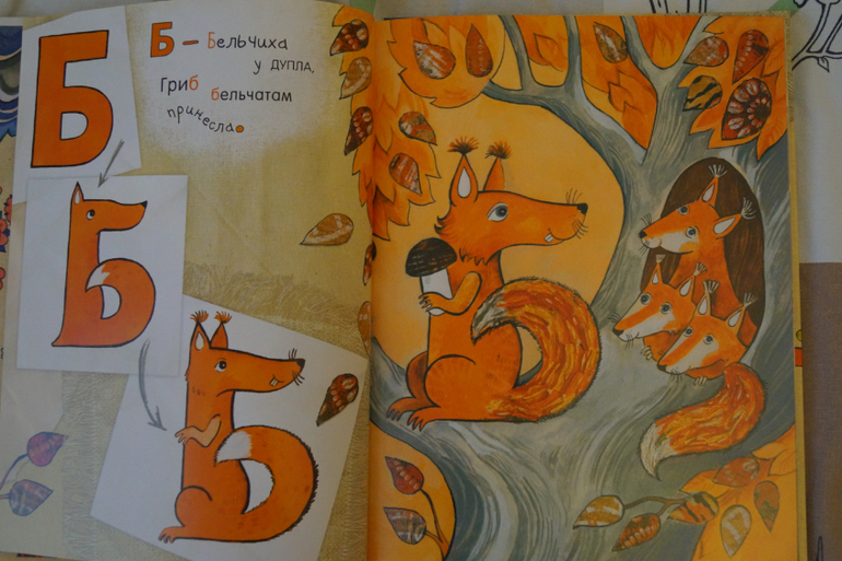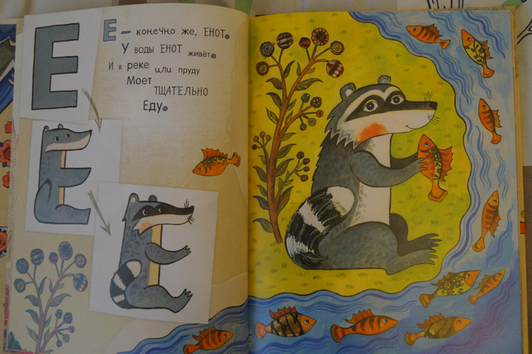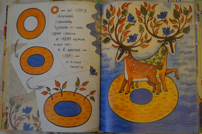 В общем и целом,мне нравится. Хорошие иллюстрации,я думаю,упростят нам такое нелегкое дело,как изучение азбуки. И бумага плотная,формат небольшой,удобный. Но...смутили меня некоторые стихи.Например,ниже фото с оленями. Своеобразные они,но может ребенку и понравится.