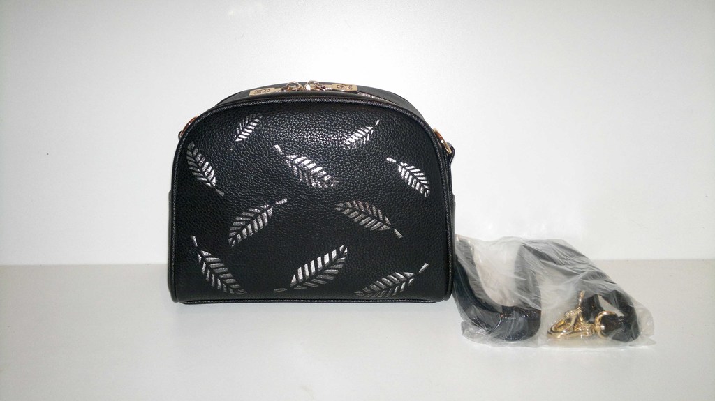 С лицевой стороны сумочка украшена стильными серебряными листьями,с обратной стороны золотистым металлическим логотипом.