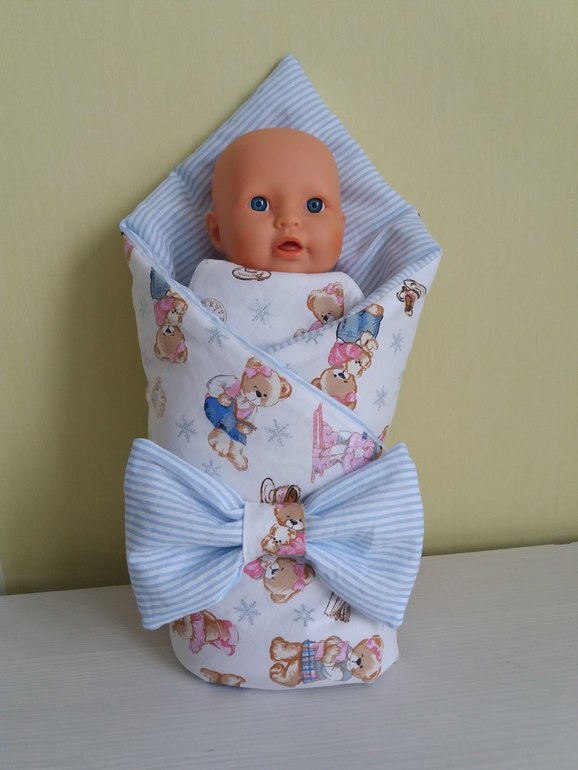 Вот такой милый комплект для куклы сшился у меня) Все как у настоящего малыша)) Одеяло- конверт с бантом на резинке. Внутри синтепон. Простынь и подушечка) Под кат много фото!