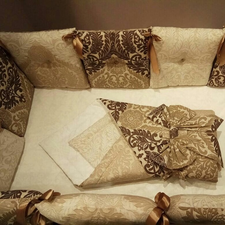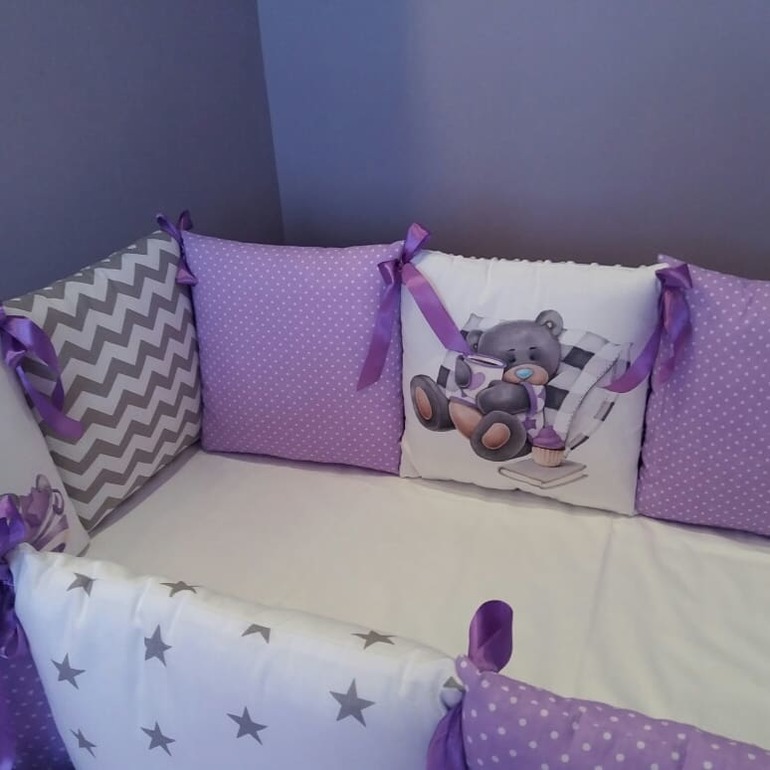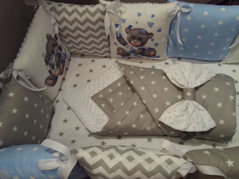 Привет, всем. Хочу показать комплект в кроватку для будушего малыша мамочки с ББ) Комплект состоит из бортиков, одеяло с бантом и простыни. Под кат много фото!!!