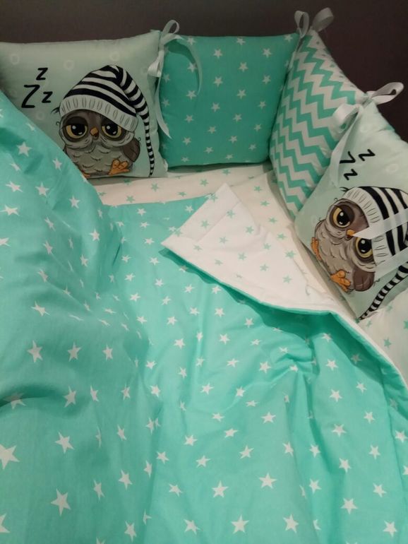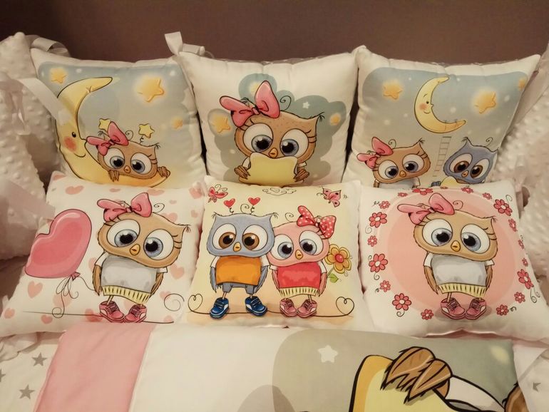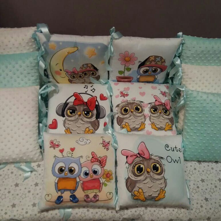 Доброе утро, девочнки!)) Хочу показать вам очередной комплект с совами) ) какие же они все милашки!))) Комплект сшит из польского хлопка. Рисунки напечатаны на сатине. Их можно стирать и гладить, с ними ничего не будет!) Под кат много фото!!!