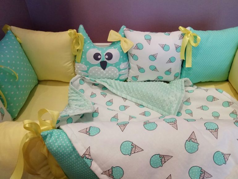 Всем привет!! Хочу показать вам мятно- лимонный комплект для малышки со вкусными мороженками и милашкой -совой)) под кат много фото!