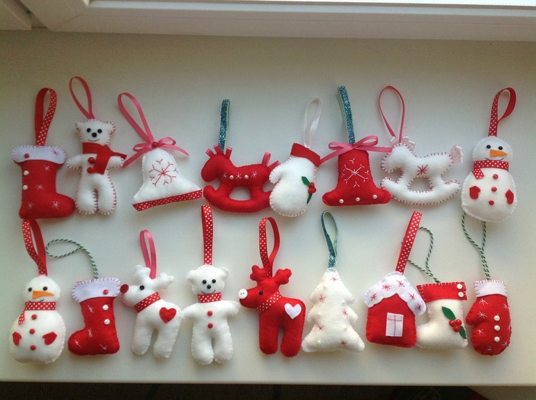 Привет, девчонки! Ну вот и я , глядя на вас, поддалась предновогоднему настроению и за несколько вечеров, нашила игрушек. Правда не все игрушки из фетра, есть из флиса белого, так как у меня его много осталось. Много фоток под кат.