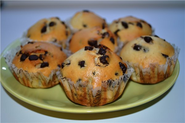 Вчера на скорую руку испекла кексики с шоколадом, получилось так вкусно, что решила поделиться с вам рецептом: